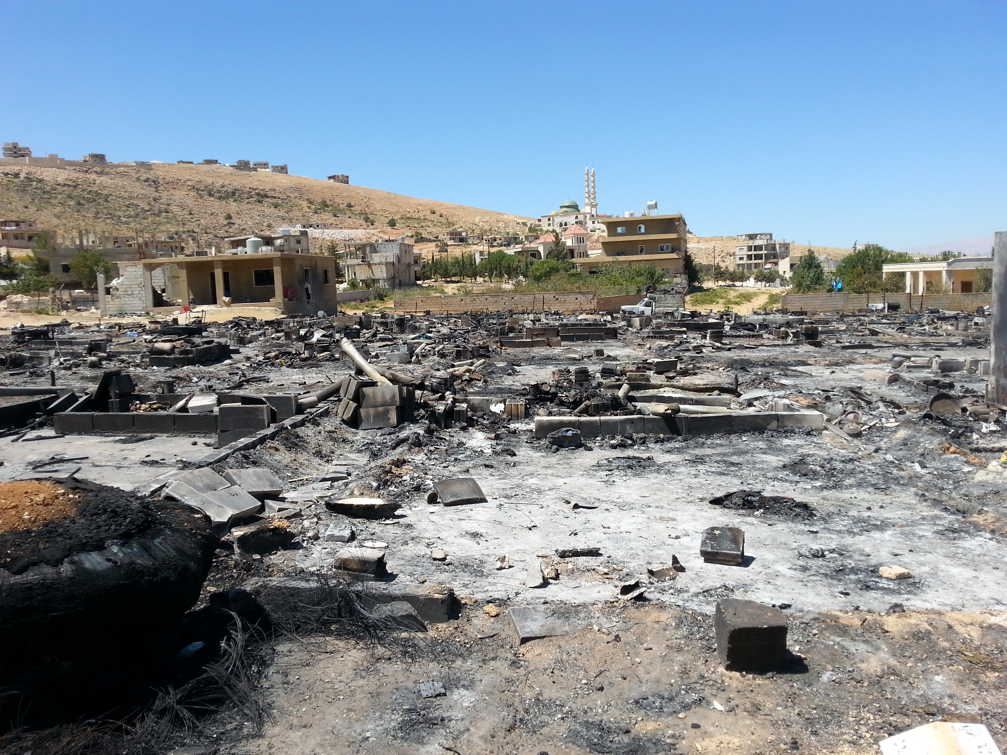 Syrian refugee camps laid to waste after ISIS invasion of Arsal, Lebanon (August 2014). Picture courtesy of Maggie Tookey